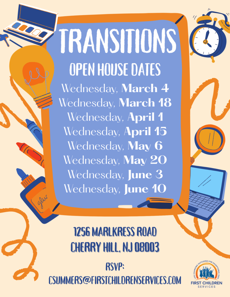 The Transitions Program model was designed to meet the needs of sending school districts. First Children is a New Jersey Department of Education Approved Clinic and Agency for counseling and home instruction. Our Transitions Program teachers are New Jersey Department of Education certified. The Transitions curriculum follows the New Jersey Student Learning Standards. Students do not need an IEP or 504 to attend the Transitions Program. Transportation to and from our programs is typically the responsibility of the sending school district.